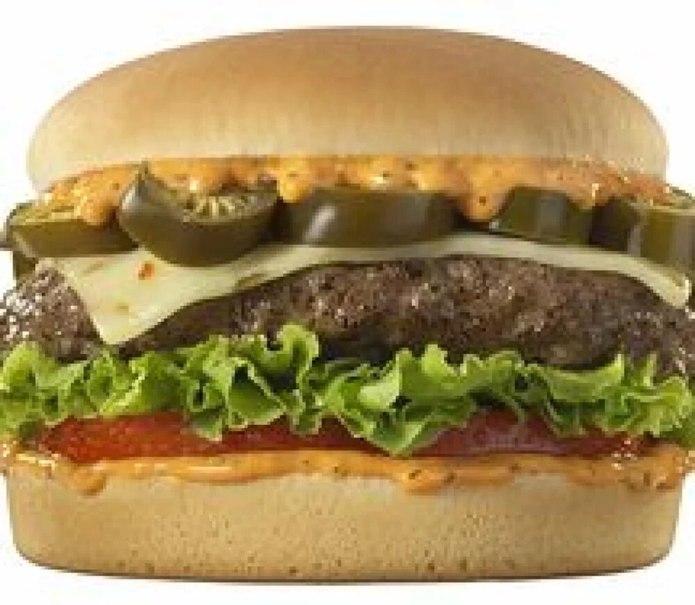 Говяжья котлета, красный лук, помидор, лист салатный, халапеньо, соленые огурцы, сыр чеддер, соус барбекю, соус цезарь